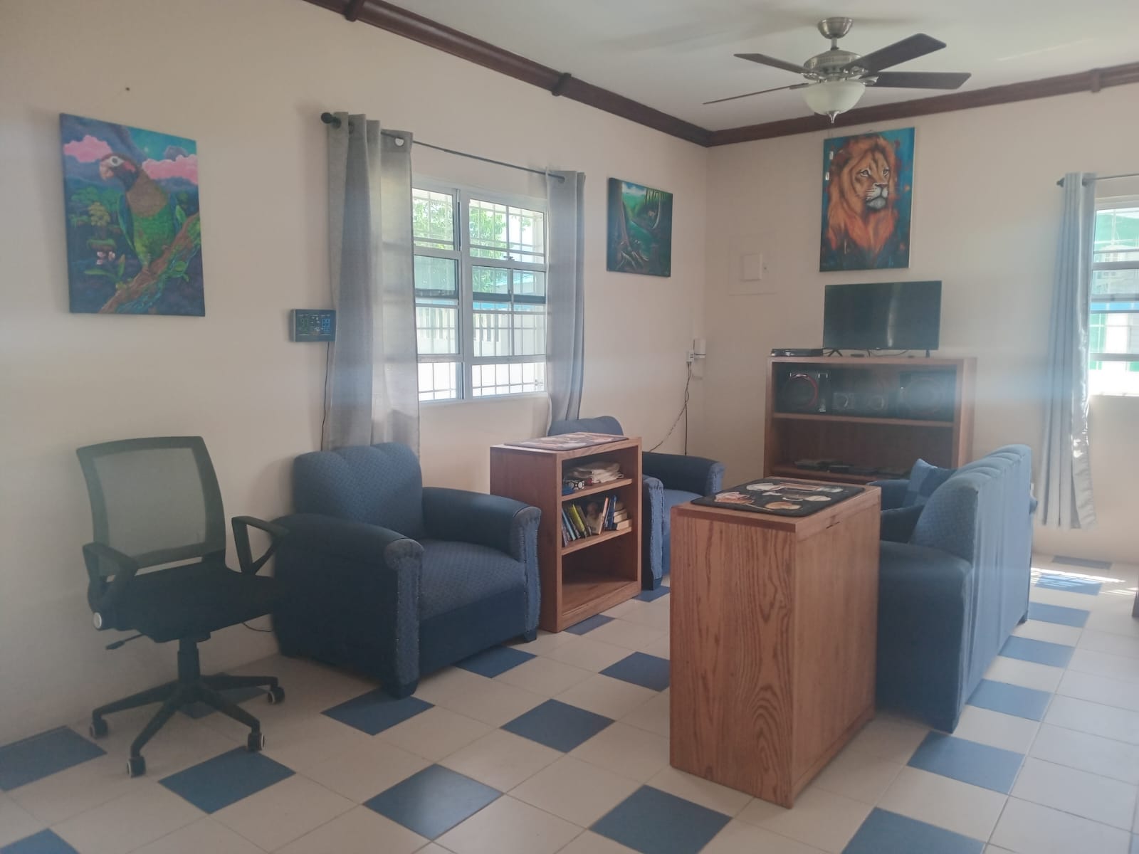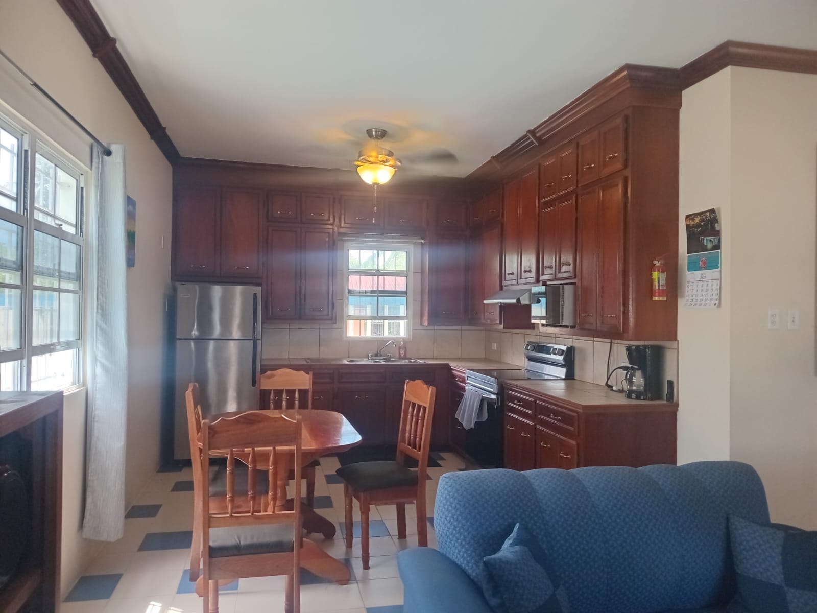 The house is tiled throughout and has ceiling fans in bedrooms and in the living area. It comes furnished and has all utilities.