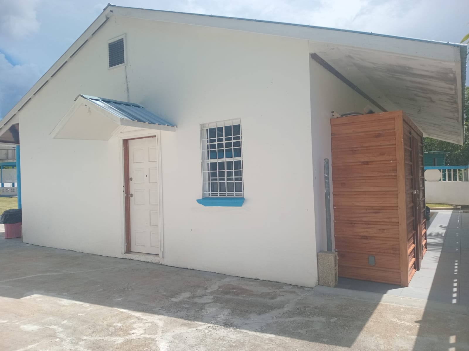 Behind the house there is a storage shed.