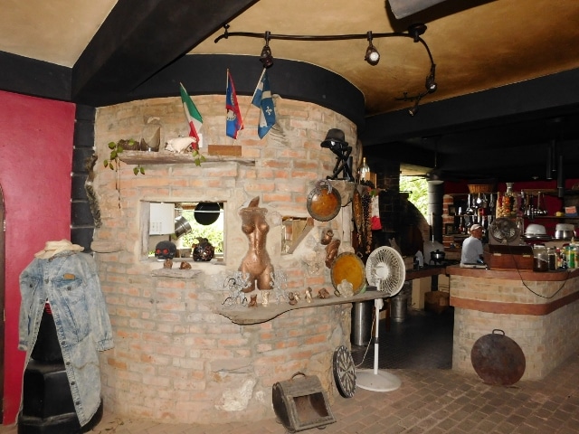 It features a uniquely designed and decorated, spacious (1,760 sq. ft.), ground floor restaurant that can seat 60 persons and is also available for parties and events, with an attractive bar area and a wood-burning pizza oven. The restaurant is styled with a Mediterranean theme with many interesting and beautiful decorations and statues, and a stream and fountain.